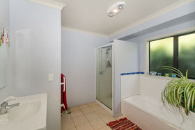 The master ensuite features separate shower, basin and heated towel rail. The main bathroom has a deep bath and separate shower and both bathrooms have tiled floors.
